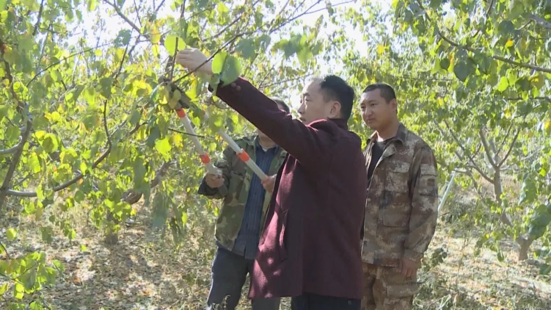 地处天山山脉南麓的一师四团永宁镇,气候温凉,日照充足,昼夜温差大,适宜吊干杏的生长,眼下,全团约3万亩的吊干杏要赶在十一月底下雪前修剪完,作为林管站党支部书记的冯汉超这段时间最忙碌,他要确保每一户职工的杏树都能得到科学修剪,为来年丰收打下基础。