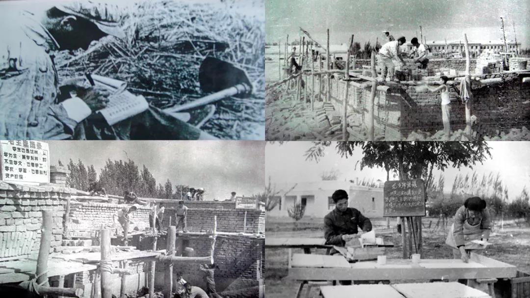 塔里木大学建校之初仅有6个地窝子、5间土平房和新开垦的500亩耕地,自然条件极端恶劣,物质条件极度匮乏。师生共同发扬南泥湾精神和抗大精神,天当房,地当床,田野做课堂;手拿笔,肩抗锄,大地写文章。