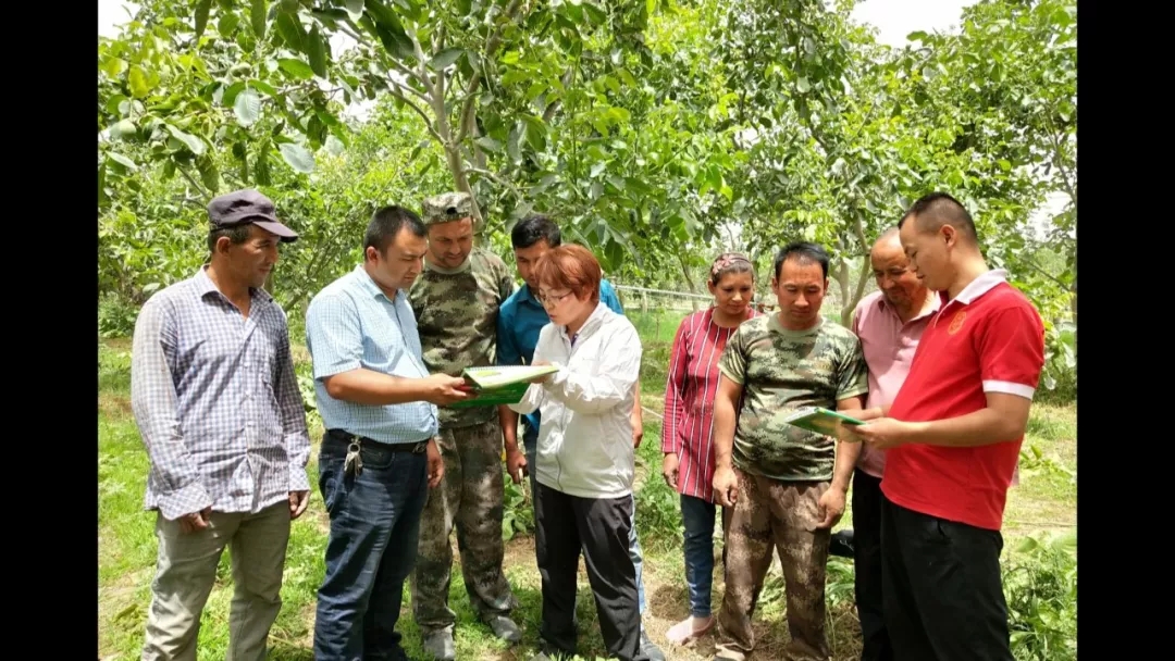 调查研究的过程中,张锐还不忘手把手地给当地农民传授,核桃树修剪、施肥技术。为了改变传统种植观念,张锐还在不同乡镇设立示范园,通过示范带动影响周边农民,目前科学种植模式已覆盖和田地区100万亩核桃地,核桃产量也从以前的亩产100多公斤,增加到现在的300公斤。
