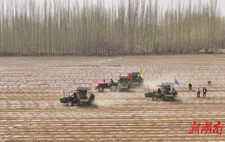 4月,新疆南部气温快速回升,来自昆仑山、天山的冰川融水,滋润着塔里木盆地的绿洲。白杨叶密,左公柳青,农民抢抓农时,正在大规模进行辣椒移栽。