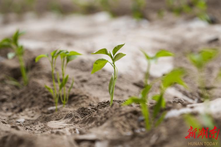 邹学校撑开大拇指和食指,量了量辣椒苗的株距。“这个密度是湖南的3倍,一亩地可以种10000多株辣椒,产量也是湖南的3倍左右。”