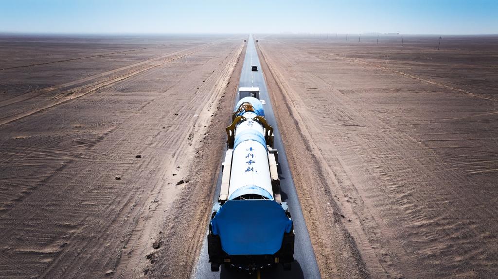 5月21日,“塔大胡杨一号”卫星搭乘中科宇航力箭一号遥七运载火箭前往发射区。图片由塔里木大学提供