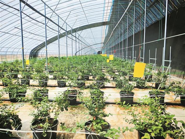 在一师阿拉尔国家农业科技园区的新疆汉唐农业科技有限公司智能大棚内,通过精细化管理的沙培蓝莓长势喜人(摄于6月20日)。