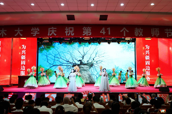 师生同台高唱《祖国不会忘记》,展现了塔大师生爱国爱疆、担当奉献,扎根边疆、献身边疆的豪情壮志。学生歌伴舞《好大一棵树》,表达了对老师的感恩之情和美好祝福。