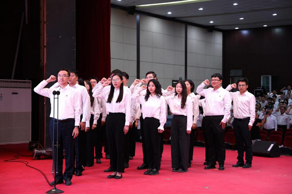 塔里木大学党委副书记、校长闫祥林带领与会教师庄严宣誓。