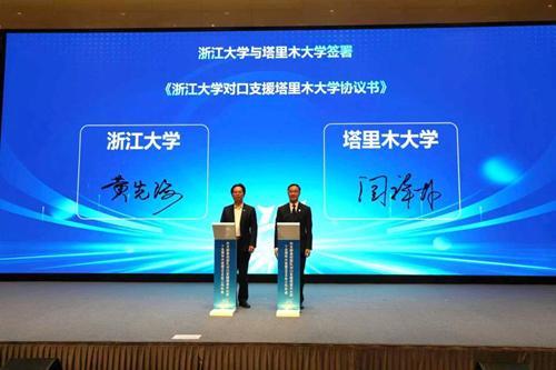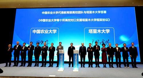 中国农业大学代表教育部高校团队与塔里木大学签订了对口支援框架协议。塔里木大学与中国农业大学、浙江大学、华中农业大学、北京化工大学、东华大学签订了新一轮对口支援协议书。