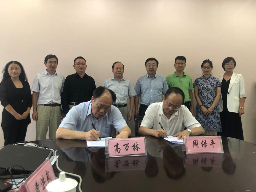 高万林与周保平签订了共建人工智能教室合作备忘录。