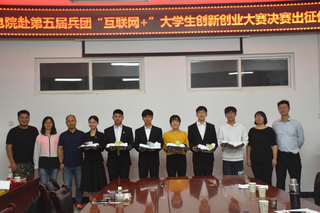 8月27日晚,第五届兵团“互联网+”大学生创新创业大赛决赛出征仪式在工科楼229会议室举行,教务处副处长龚䶮,机电院党委副书记胡松林,辅导员和入围决赛的5支队伍参加了出征仪式。