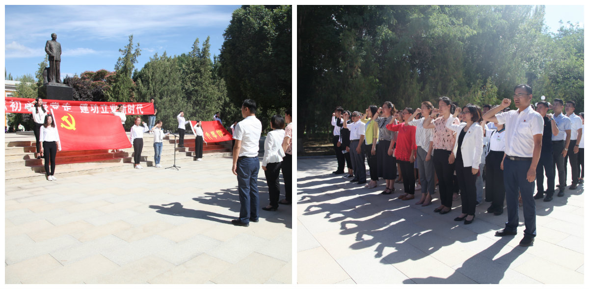 在建党98周年即将到来之际,人文学院党委于6月26日在红色广场王震将军像前举办“我的初心”主题党日活动。全体肃立,奏唱国歌,活动在庄严的国歌声中正式开始。人文院党委副书记雷长柱,学院党委委员,全体师生党员参加活动。