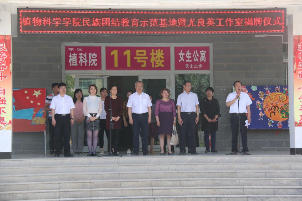 5月29日下午,植物科学学院民族团结教育示范基地暨全国人大代表尤良英工作室揭幕仪式举行。党委常委、副校长曲义勇,党委统战部部长阿不都卡迪尔·艾海提,校外辅导员尤良英,学生工作部部长孟琪,植科院党委副书记、院长万素梅,学工部副部长陈蕾,校团委副书记常海亮出席。仪式由植科院党委书记蒋学玮主持,在东区11号学生宿舍楼门口举行。