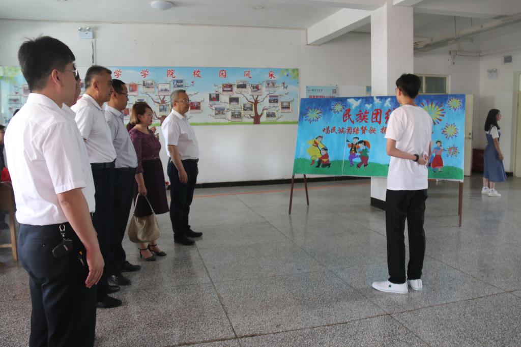参加仪式的领导和师生一同参观了民族团结示范基地、尤良英工作室和学院学生绘制的“民族团结”主题展板。