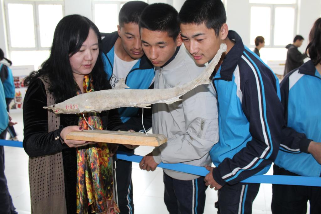 4月11日-13日,科普服务团先后进入和田地区墨玉县第五中学及墨玉县吐外特乡中小学开展科普活动。通过扁吻鱼(新疆大头鱼)、新疆岩蜥、塔里木兔、高山兀鹫等80余件动物实物标本的展示,辅以塔里木盆地环境变迁及生物多样性图片展板、宣传手册、问卷调查、科普纪念品发放等多种形式,向墨玉县青少年详尽介绍了环塔里木盆地生物多样性情况及作为生态脆弱区生态环境保护的迫切性和重要性。科普宣传结束后,科普服务团向部分学校赠送了用于课堂教学的骨骼标本和文具。