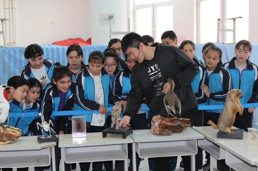 为发挥文化引领作用,弘扬科学精神,培养公民保护环境及野生动物的意识,在爱鸟周和世界地球日来临之际,在学校科协、统战部支持下,民盟塔里木大学支部、历史与哲学学院、生命科学学院师生深入南疆基层及农村中小学,开展了主题为“保护环境 和谐共生”野生动物保护宣传暨南疆野生动物标本展科普活动。
