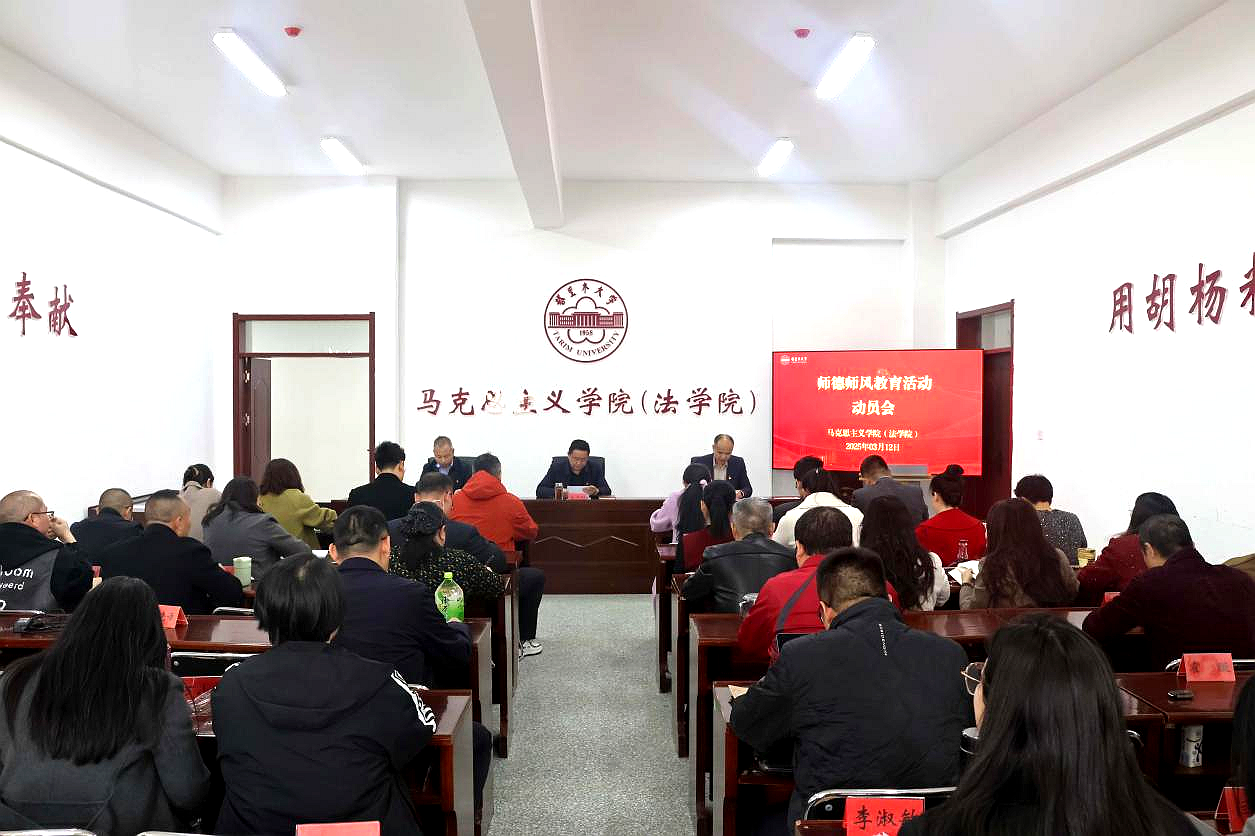 3月12日,马克思主义学院(法学院)召开师德师风教育活动动员会。学院党委书记王志刚主持会议。