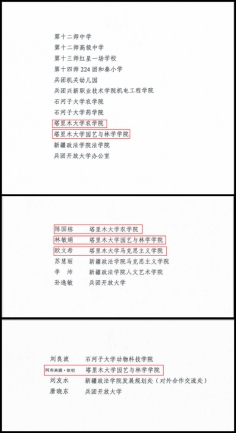 近日,兵团教育局、兵团人力资源和社会保障局印发《关于表彰兵团教育系统先进集体和先进个人的决定》。我校农学院、园艺与林学学院获得“兵团教育系统先进集体”称号,陈国栋、林敏娟、欧文希获得“兵团教育系统优秀教师”称号,阿布来提·依明获得“兵团教育系统优秀教育工作者”称号。