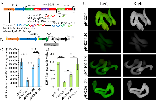 该研究开发出一种全新的CRISPR/Cas9系统——pHNRhCas9NG,为植物基因组编辑领域带来了突破性进展。这一系统通过开发一种新的名为pHNR的二元表达载体,确保了T-DNA在插入过程中的完整性,优化人工启动子和mRNA多聚腺苷酸(poly(A))尾巴长度,以及植物最适的Cas9基因,显著提高了基因编辑效率,在测试的植物中几乎实现了100%的编辑成功率。