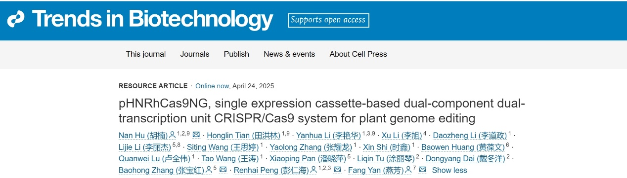 4月24日,我校园艺与林学学院教师胡楠在Cell子刊、生物技术领域的国际顶级期刊《Trends in biotechnology》(中科院一区,IF=16.8)上发表了题为“pHNRhCas9NG, single expression cassette-based dual-component dual-transcription unit CRISPR/Cas9 system for plant genome editing”的研究成果。胡楠为第一作者和共同通讯作者,园艺与林学学院戴冬洋博士、涂丽琴博士参与该项研究。该研究得到国家自然科学基金和中国博士后科学基金等科研项目的支持。