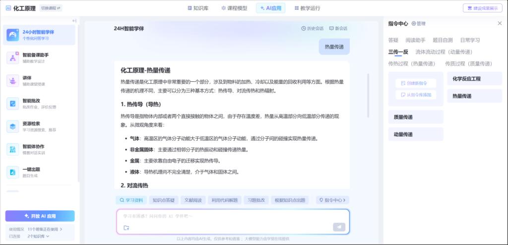 《化工原理》AI课程有效破解了课程长期存在的“理论抽象难转化、实践资源受限、个性化教学缺失”三大痛点,不仅显著提升了教学效率与质量,更构建了覆盖“教、学、评、管”全链条的智能教学新生态,为新工科人才培养注入了动力。