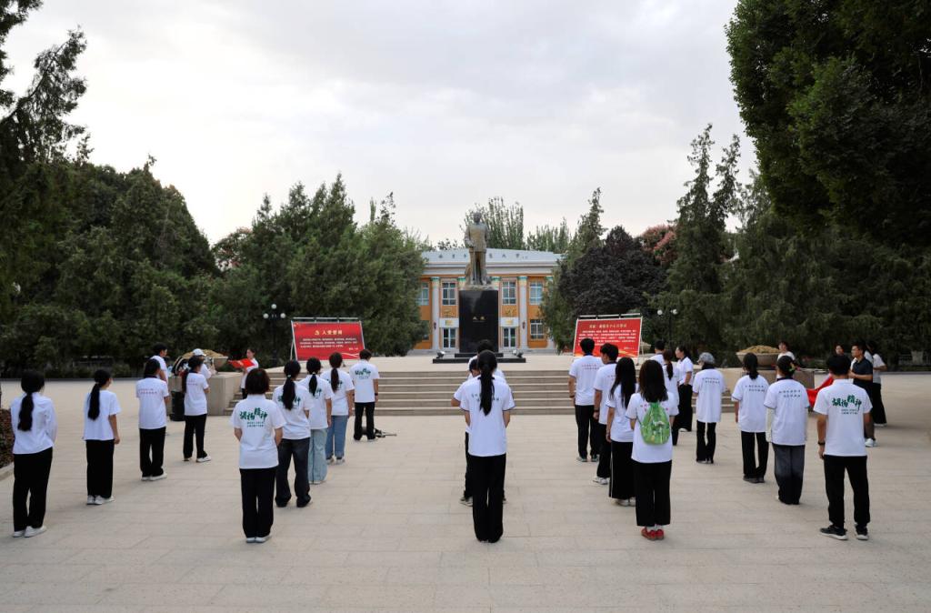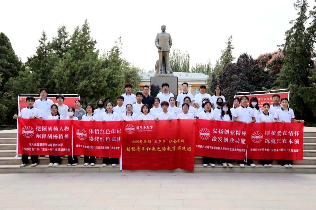 7月4日,塔里木大学胡杨·融媒体中心在红色文化广场王震将军铜像前,举行2025年暑期“三下乡”社会实践活动出征仪式。
