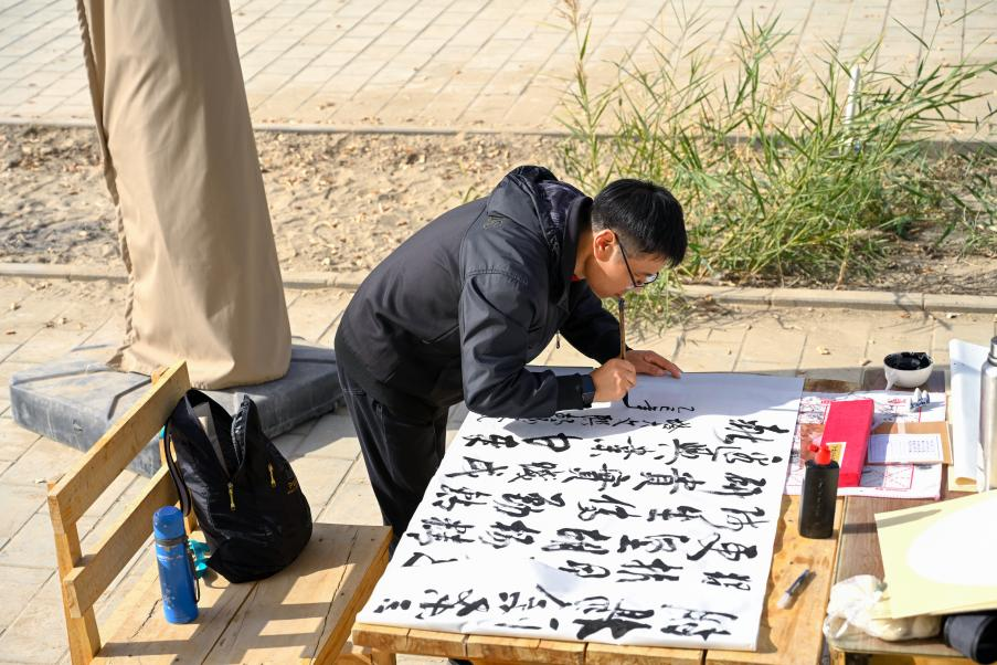 书法家协会、美术家协会挥毫泼墨,苍劲有力的笔锋展现胡杨坚韧挺拔气质。