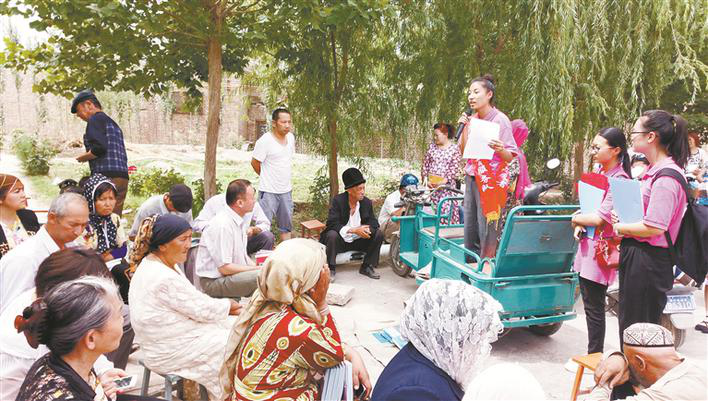 塔里木大学志愿者服务队队员到基层社区宣传法律知识(资料图片)。