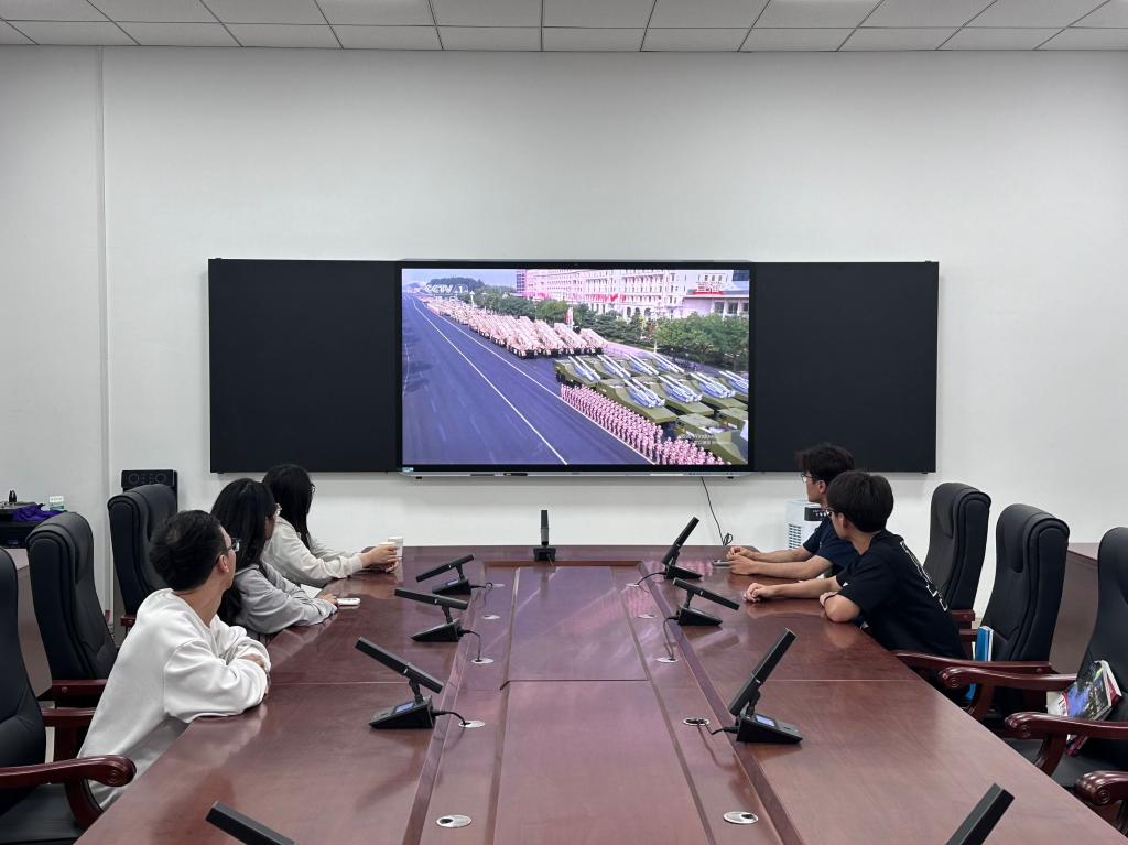 见证庄严时刻,共同铭记历史。校领导、机关处级干部、思政课教师代表、辅导员代表、学生代表等在胡杨学子综合服务中心四楼会议室一起收看纪念大会。各部门、各学院组织干部师生收看,学校开放校本部、新校区(东扩区)广场、食堂、教室、实验室、办公室、图书室等处电子大屏、楼宇电视,给师生们收看创造条件。
