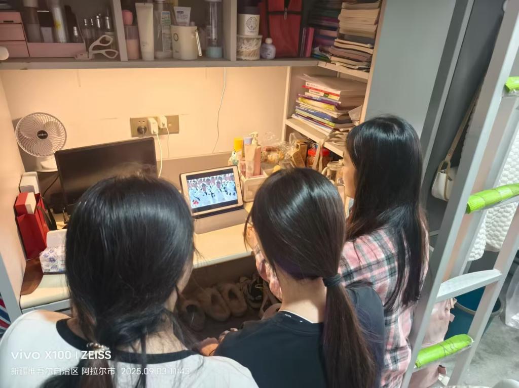 “精神丰碑的巍然矗立,强军变革的磅礴进程,捍卫和平的时代使命。”塔里木大学马克思主义学院(法学院)思政课教师高礼增说,收看阅兵式让我深刻感受到了历史的厚重与国家的强大。作为一名兵团高校思政课教师,我深感使命在肩、责任重大,将把伟大抗战精神融入思政课,从历史中汲取养分,从现实中发掘素材,讲深讲透讲活思政课,将厚重的历史记忆转化为滋养学生成长的养分,教育引导学生深刻认识抗日战争取得伟大胜利的时代背景和历史意义,把爱国情、强国志转化为扎根边疆、献身边疆的实际行动。
