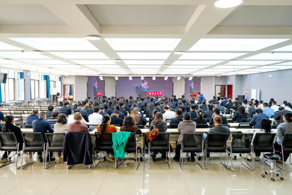 闫祥林动员指出,举行此次集中大课,旨在进一步筑牢全体党员的思想根基,强化党员身份意识、责任意识和先锋意识,为落实立德树人根本任务、推动学校事业高质量发展,提供坚强政治和组织保障。全校党员干部要珍惜培训机会,切实将培训的成果转化为提升党性修养、增强履职能力的强大动力。始终牢记“国之大者”,时刻铭记党员身份,筑牢政治品格,锤炼过硬本领,勇担时代使命,牢牢把握教育的政治属性,以绝对的忠诚办好党放心的大学,牢牢把握教育的人民属性,以优良的作风办好人民满意的教育,牢牢把握教育的战略属性,以胡杨精神激励担当作为,为加快建设兵团特点南疆特色一流大学不懈努力,在推进中国式现代化南疆实践、兵团实践中作出新贡献。