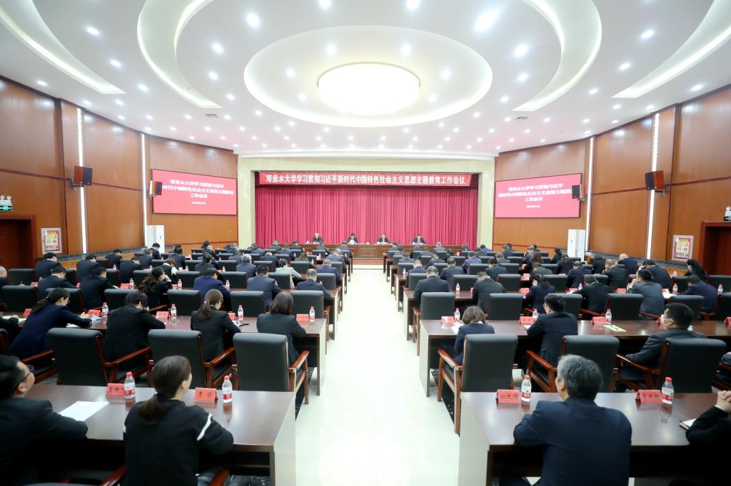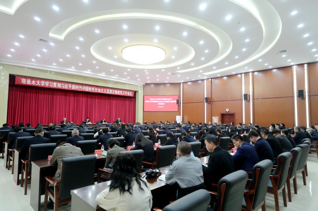 4月15日上午,塔里木大学学习贯彻习近平新时代中国特色社会主义思想主题教育工作会议在会议中心召开。会议深入学习贯彻习近平总书记在中央主题教育工作会议上的重要讲话精神及自治区、兵团主题教育工作会议精神,按照党中央部署要求和自治区党委、兵团党委安排部署,对学校深入开展主题教育进行动员部署。塔里木大学党委书记赵光辉主持会议并讲话。兵团第八巡回指导组组长王汉全出席会议并讲话。兵团第八巡回指导组成员、塔里木大学在校党委常委、党委委员、全体处级干部、自治区、兵团党代会代表、基层党务工作者代表参加会议。