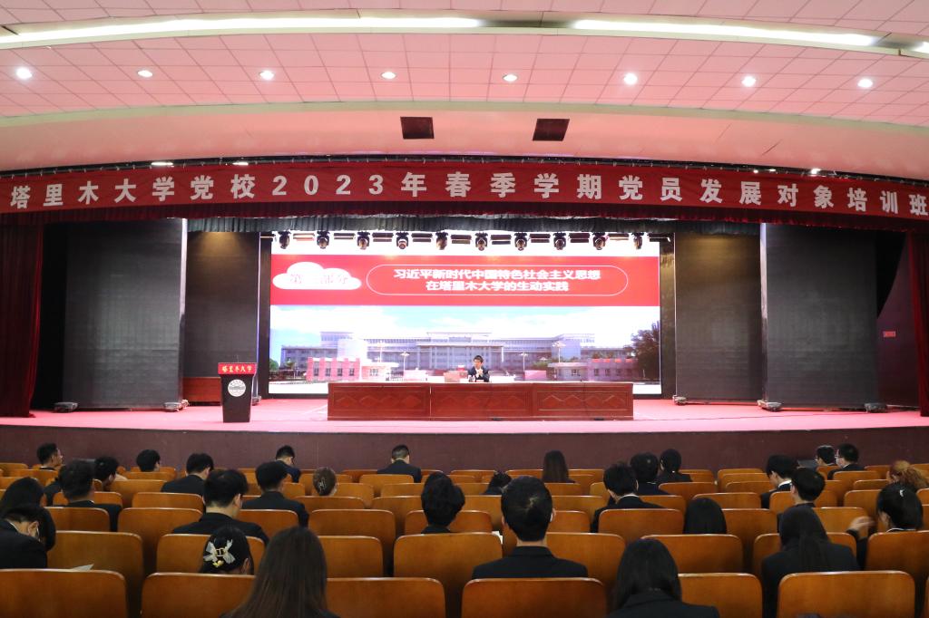 赵光辉围绕深刻领会党的二十大的重要意义;深刻理解党的二十大精神的核心要义;习近平新时代中国特色社会主义思想在塔里木大学的生动实践;让党的二十大精神在塔里木大学生根发芽、开花结果等四个方面,为党员发展对象上了一堂精彩生动的专题党课。