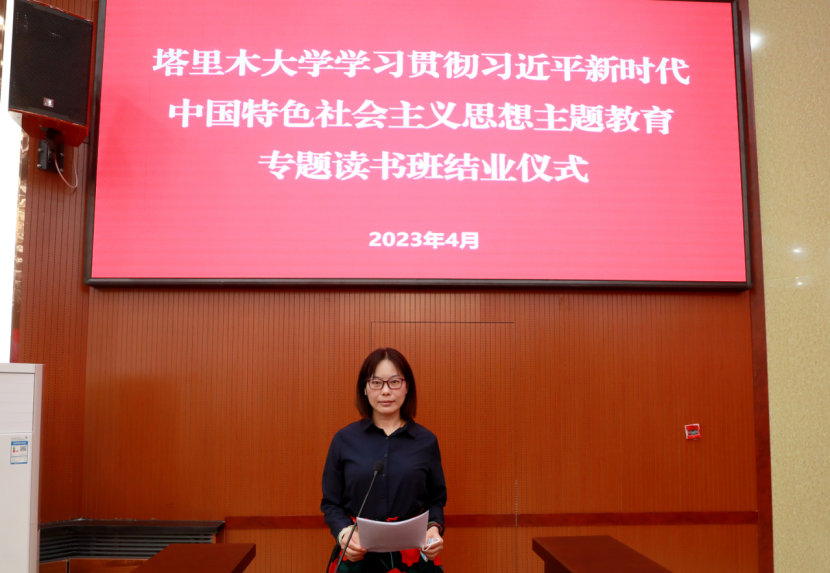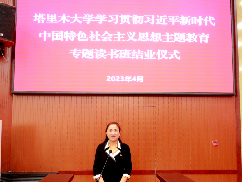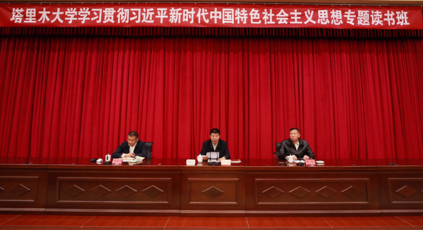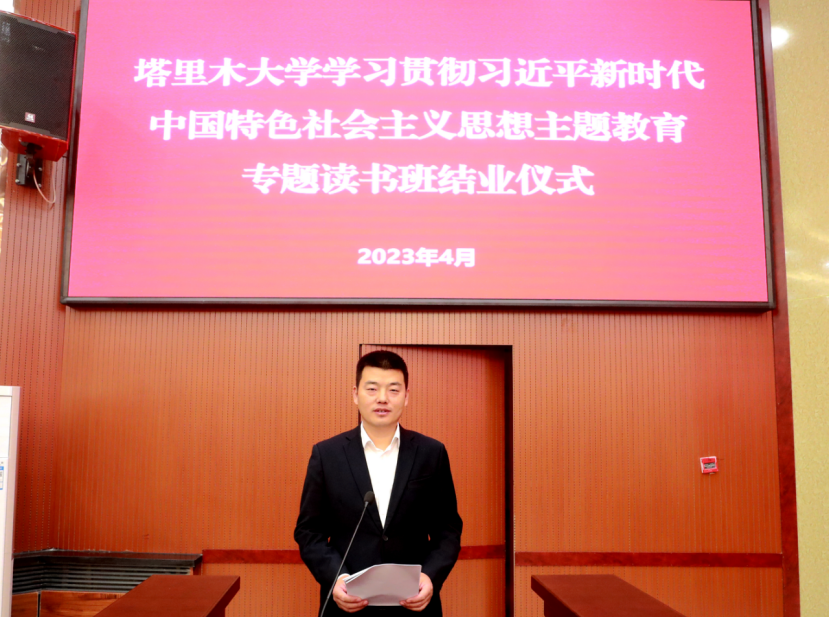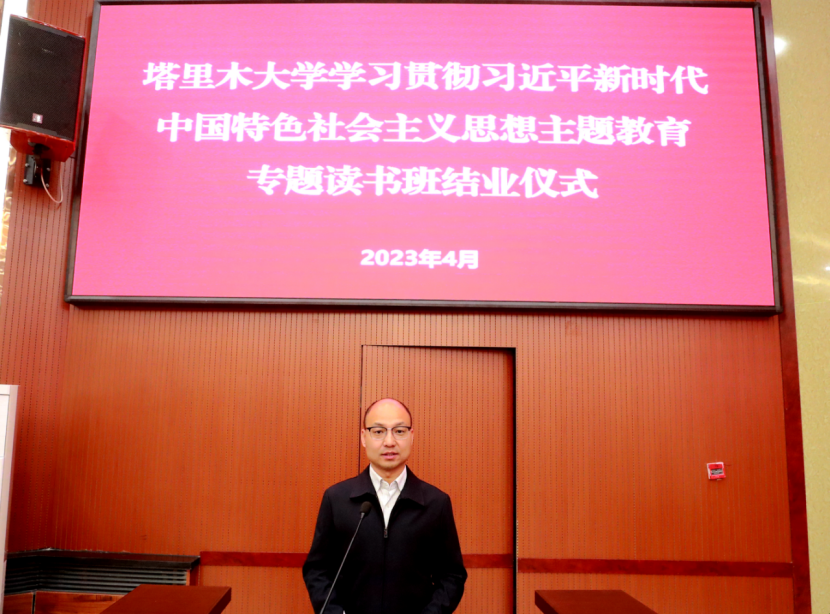 4月29日上午,塔里木大学召开学习贯彻习近平新时代中国特色社会主义思想主题教育专题读书班结业仪式。党委书记赵光辉主持结业仪式并讲话。党委常委、副校长于军、石长青出席,全体副处级及以上领导干部参加,在会议中心召开。