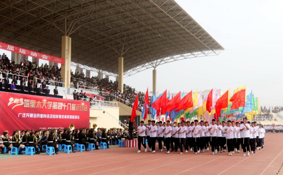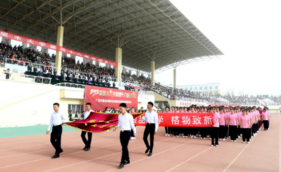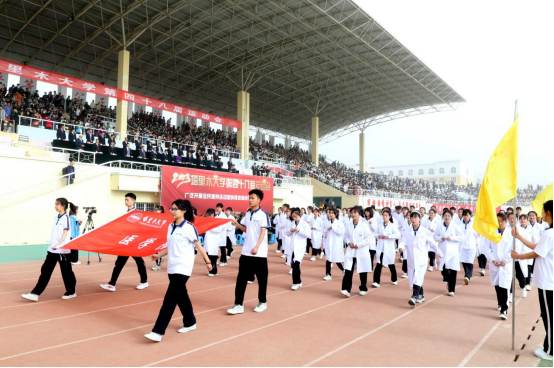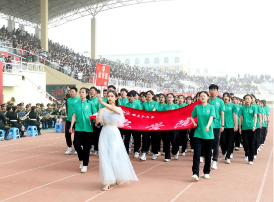 当我在追光,我与光同航。入场式开始,国旗方队、校旗方队、彩旗方队精神抖擞、气宇轩昂;裁判员代表队、研究生代表队、各学院代表队身着特色的服装、喊着嘹亮的口号,踏着整齐的步伐,依次通过主席台,展现了蓬勃的朝气和昂扬的风貌。