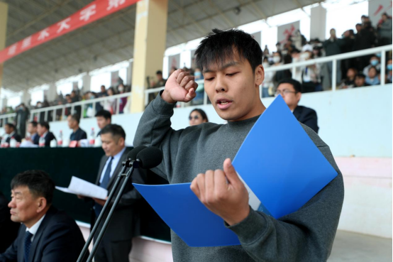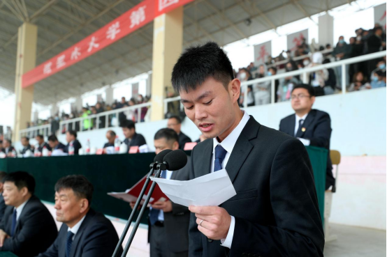 运动员代表、水产养殖学2021级1班王旭发言表示,将严格遵守比赛规则,坚决服从裁判,发扬团结友爱、顽强拼搏的精神,赛出风格、赛出水平。